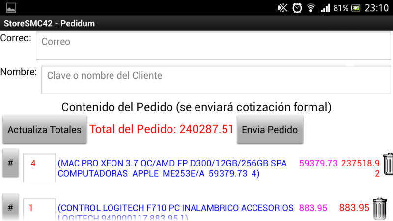 A continuación se muestran las imagenes de esta aplicación con un cliente real: StoreSMC42.
