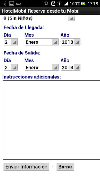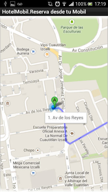 A continuación se muestra un ejemplo de un hotel (no existe en la vida real, sus datos son inventados) que se encuentra en el centro histórico de la ciudad de México. La secuencia de imágenes nos muestra cada una de las funcionalidades y como las vería un cliente en un Smartphone con Android