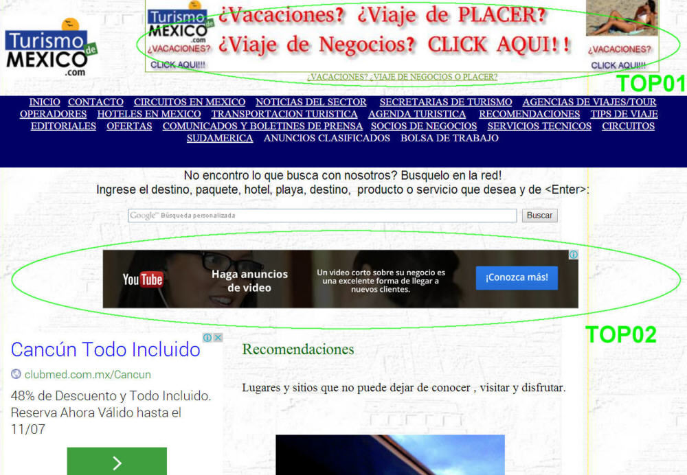 espacios publicitarios con banners. Estas opciones incluyen distintos tamaños de las imágenes de banners, en distintas partes de los sitios que son el estándar de la industria y que han demostrado ser los mejores lugares de